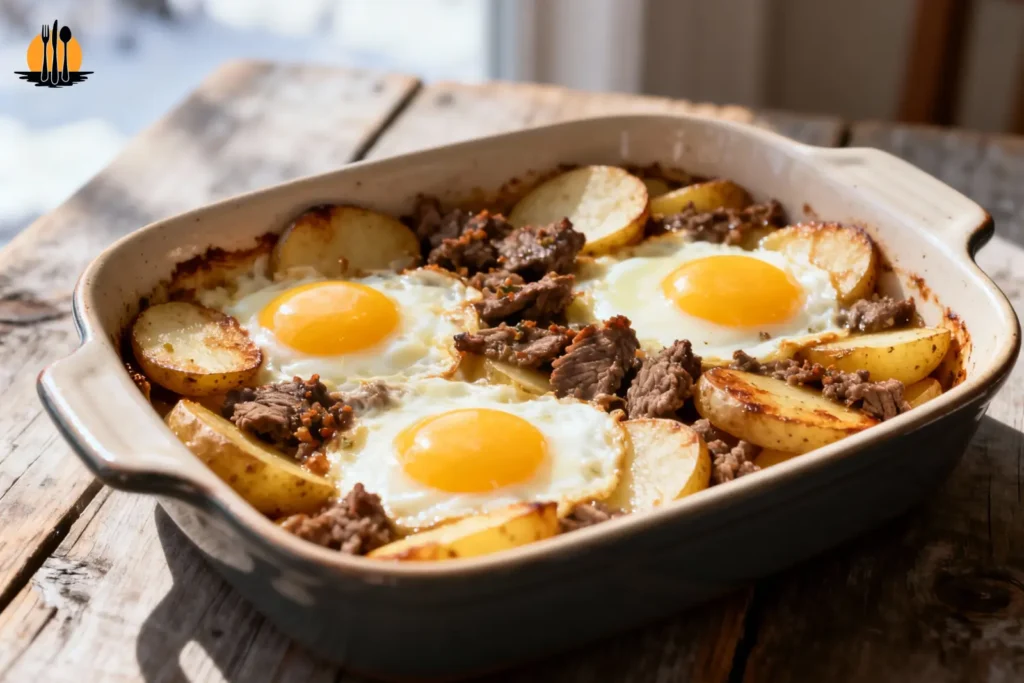 A warm, oven-baked breakfast dish with soft potatoes, baked eggs, and savory flavor, perfect for chilly mornings or breakfast-for-dinner nights. …