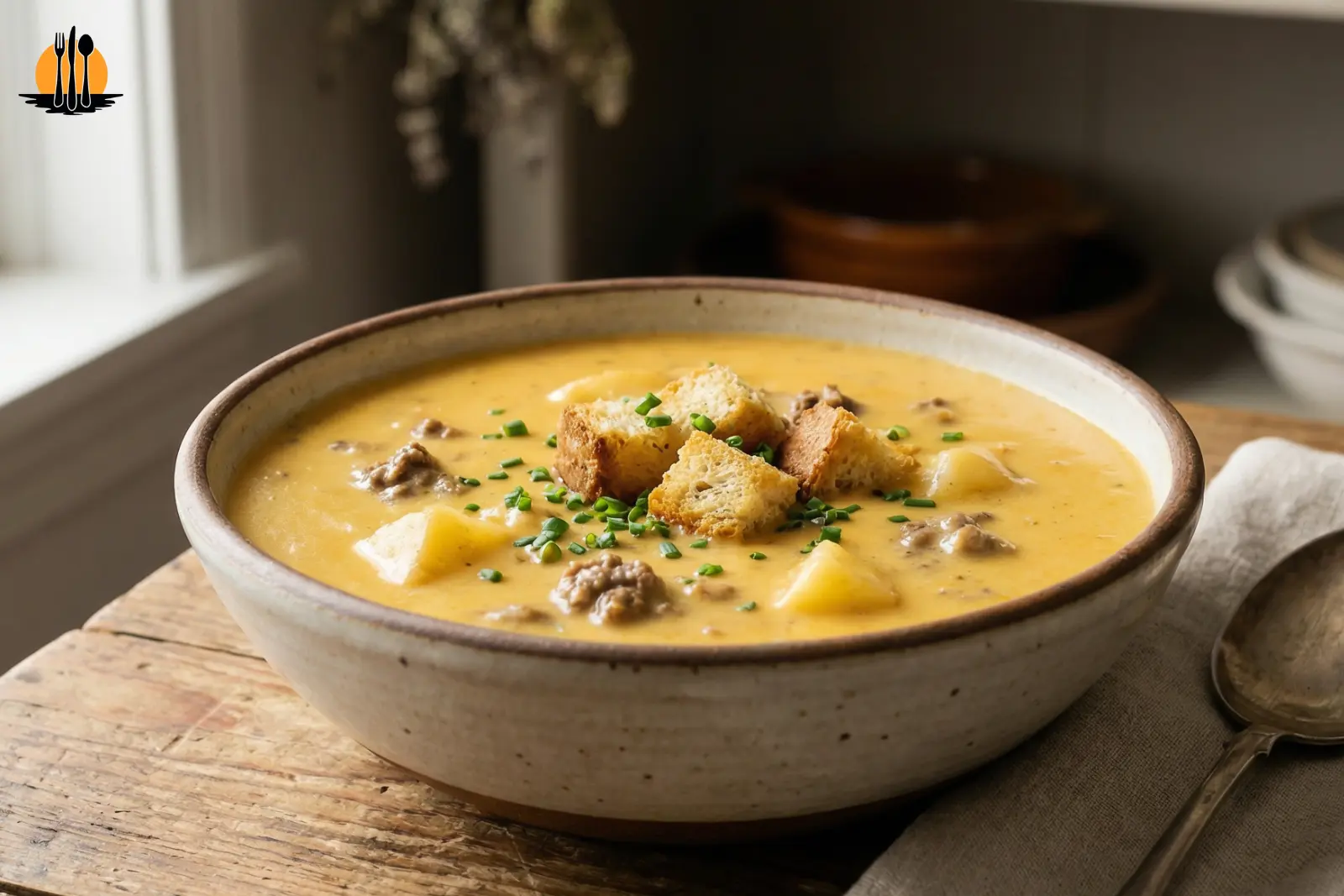 A rich, creamy cheeseburger soup with tender beef, potatoes, and melted cheese, all the comfort of a classic burger in a warm bowl.