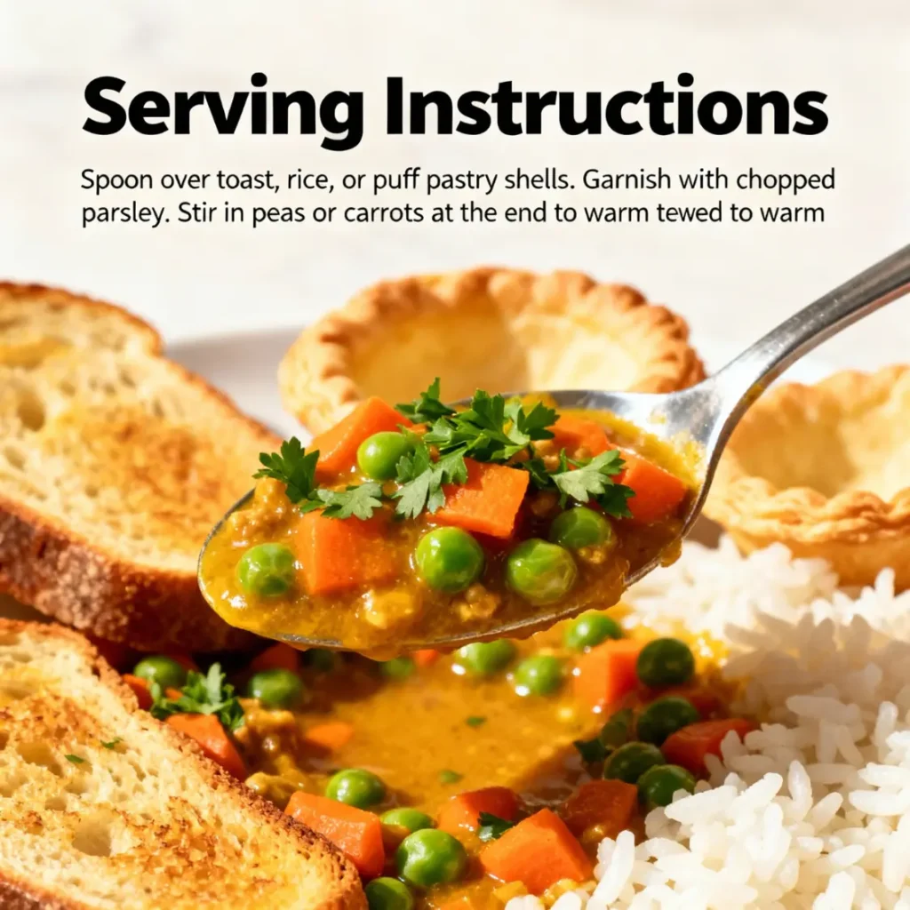 • For serving: toast, puff pastry shells, rice, or biscuits