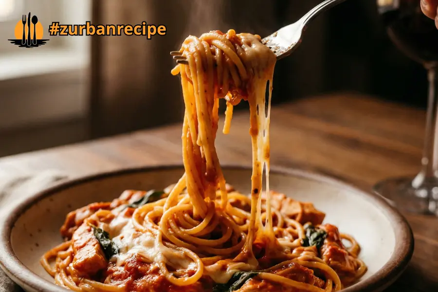 A rich, velvety tomato sauce infused with garlic, tender chicken, and perfectly coated pasta for the ultimate comfort bite.