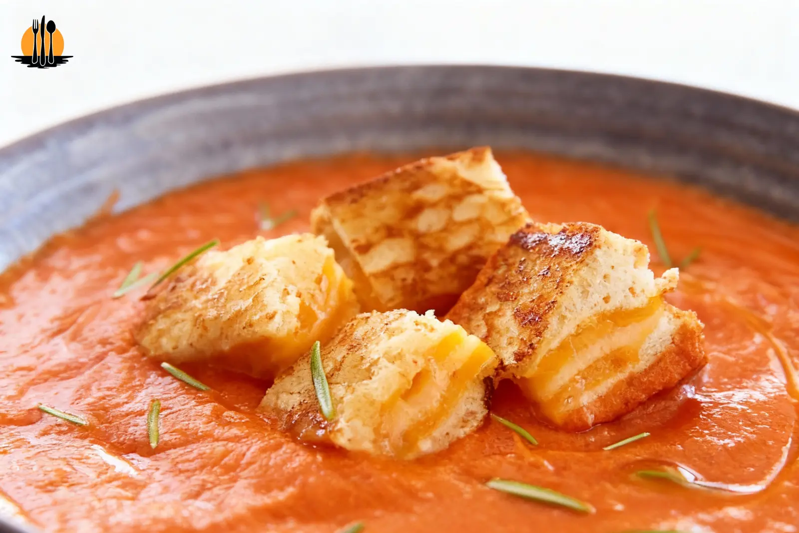A smooth, comforting tomato soup finished with crispy grilled cheese croutons made for cold winter evenings.