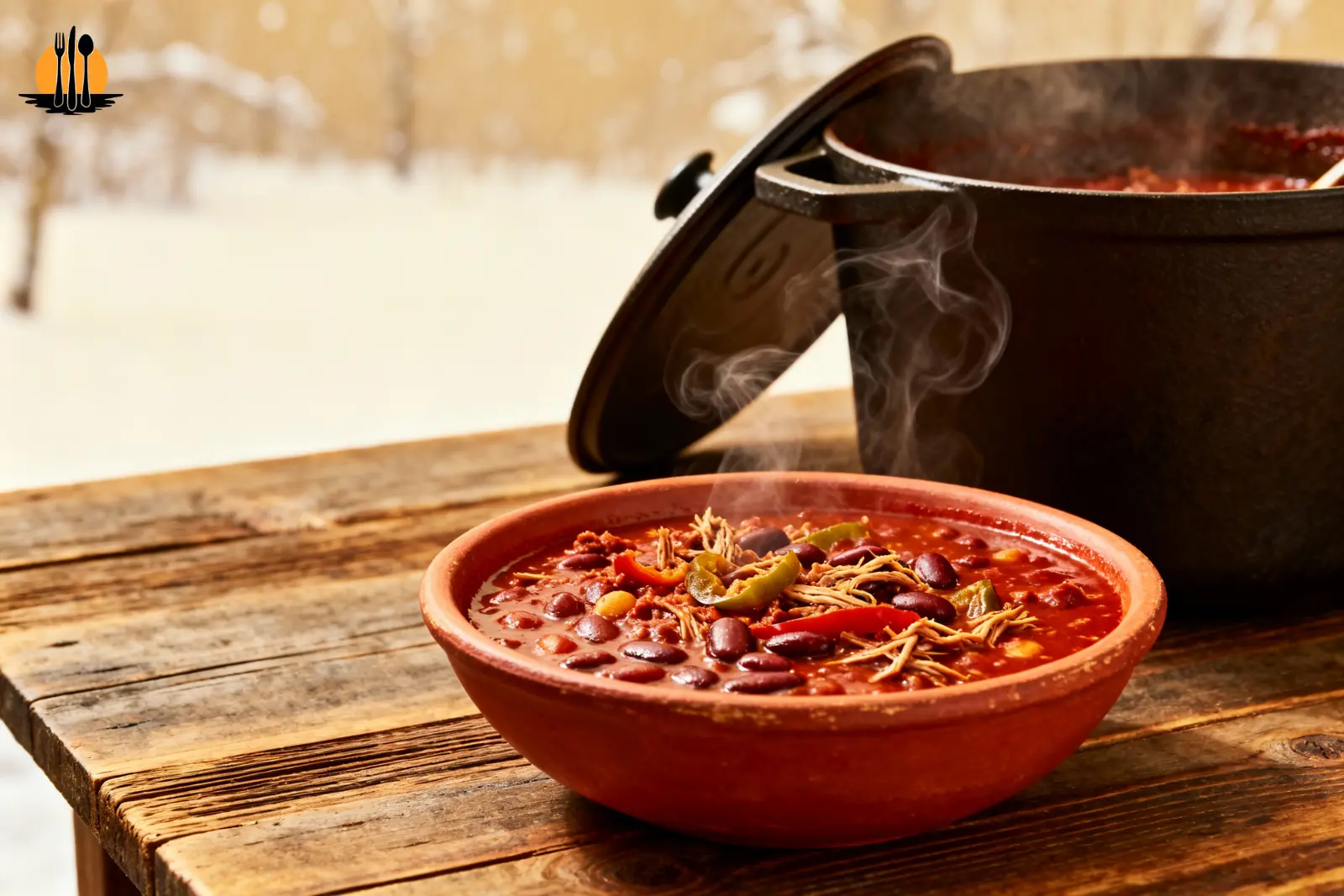 A hearty winter chili packed with beans and roasted peppers, slow-simmered into a warming bowl that feels bold, filling, and deeply comforting on cold days.