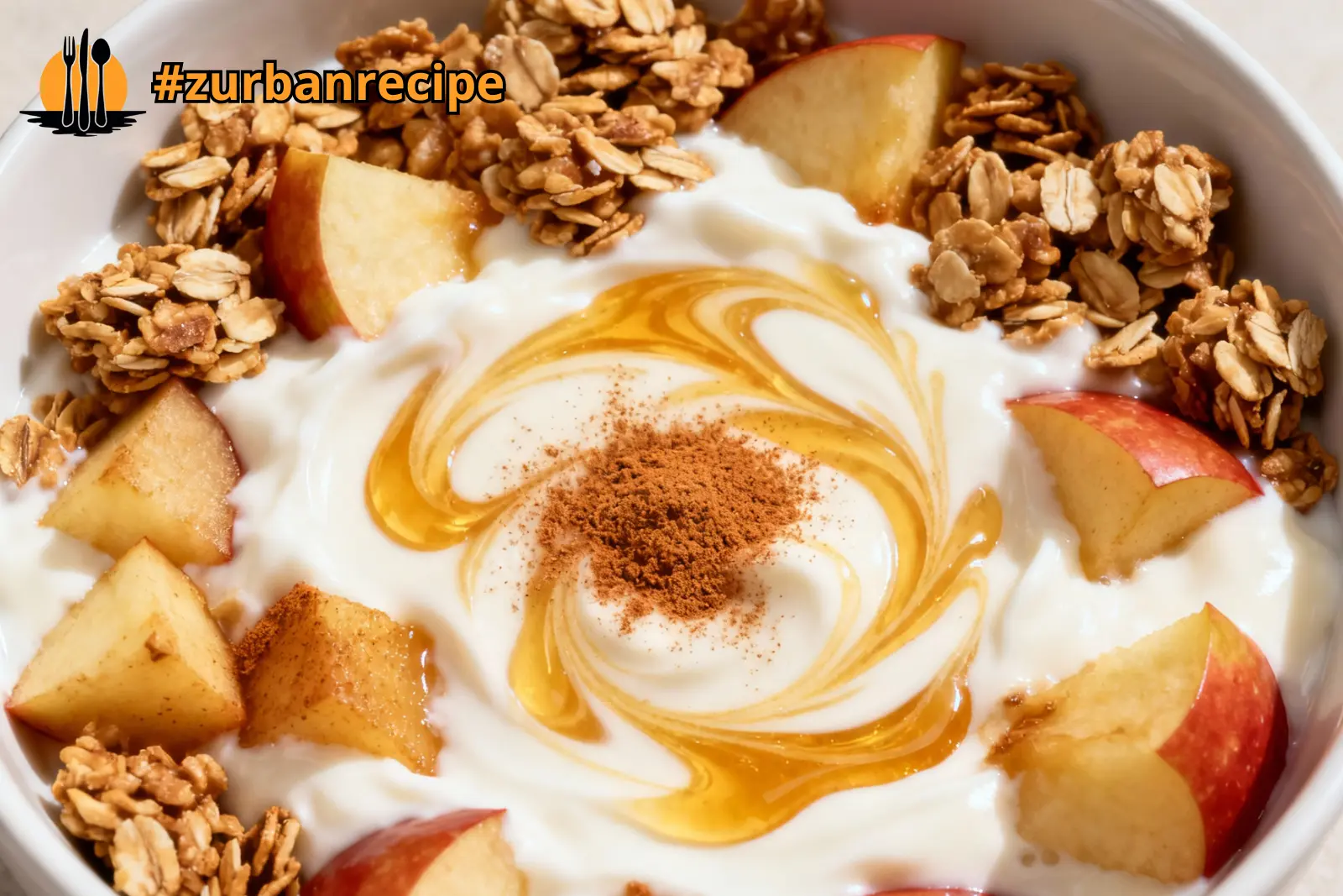 A cozy, high-protein breakfast that layers creamy yogurt, warm cinnamon apples, and crunchy oats for a quick bowl that tastes like apple pie.