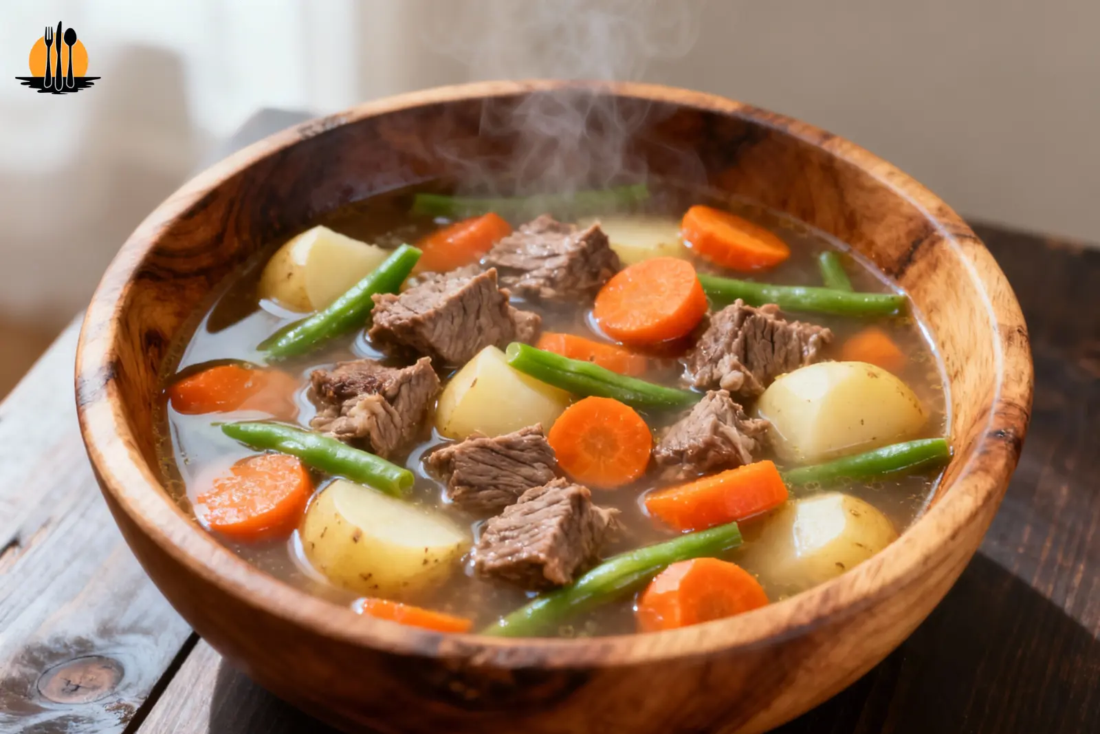 Bring the soup to a gentle boil, then reduce heat and simmer until the beef is tender and the vegetables are fully cooked.