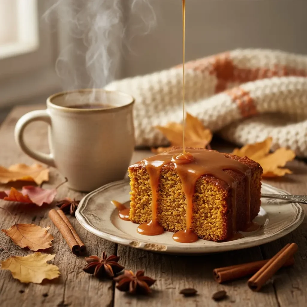 Autumn has a way of wrapping us in comfort, the crunch of fallen leaves, the cozy pull of sweaters, and the irresistible aroma of spices drifting from the kitchen. This Pumpkin Spice Cake recipe with Caramel Drizzle captures that magic in every bite, bringing the warmth of the season straight to your table.