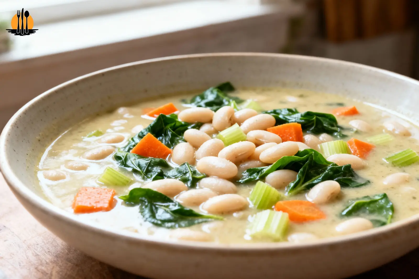 Creamy white beans simmered in a savory broth with tender spinach and gentle herbs, a simple Tuscan-inspired soup that feels warm and nourishing on cold days.